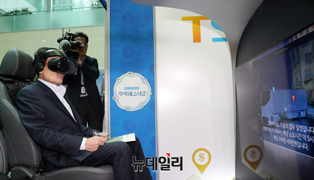 [포토] 2019 정책페스티벌 개막식, 자율주행 체험하는 이해찬