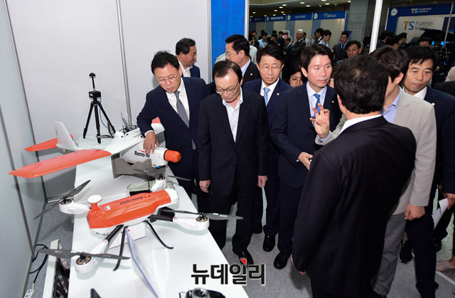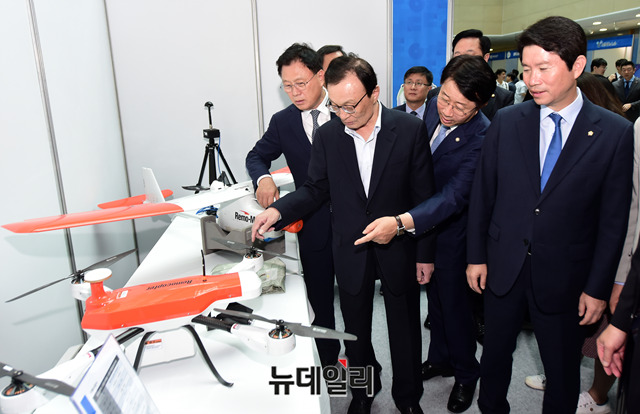 [포토] 더불어 2019 정책페스티벌 개막식, 드론 살펴보는 이해찬