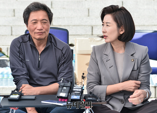 [포토] 이학재 단식투쟁, 격려 방문한 나경원