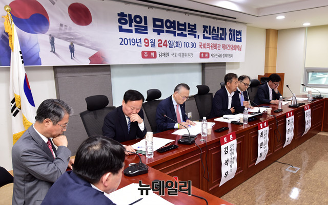 최원목 이화여자대학교 법학전문대학원 교수가 24일 오전 국회 의원회관에서 열린 '한일 무역보복 진실과 해법' 토론회에서 발제를 하고 있다.