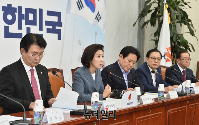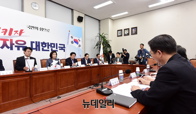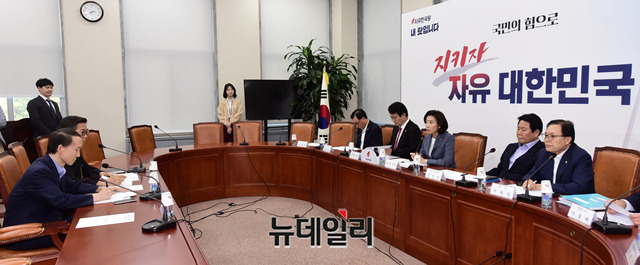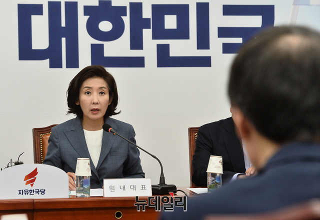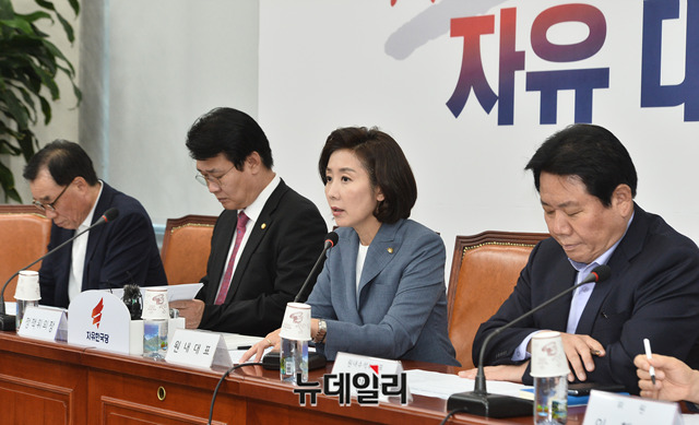 나경원 자유한국당 원내대표가 24일 오후 국회에서 열린 제일평화시장 화재대책TF 1차 회의에서 발언을 하고 있다.