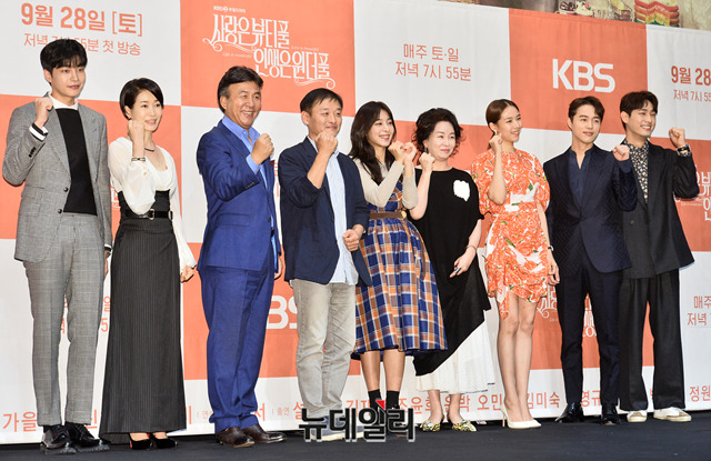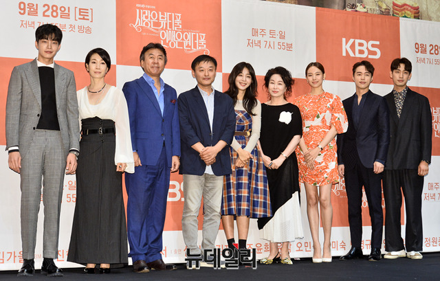 배우 김재영(왼쪽부터), 나영희, 박영규, 연출 한준서, 배우 설인아, 김미숙, 조윤희, 오민석, 윤박가 25일 오후 서울 구로구 라마다 신도림호텔에서 열린 KBS 2TV 주말드라마 '사랑은 뷰티풀 인생은 원더풀(연출 한준서, 극본 배유미)' 제작발표회에서 포토타임을 갖고 있다.