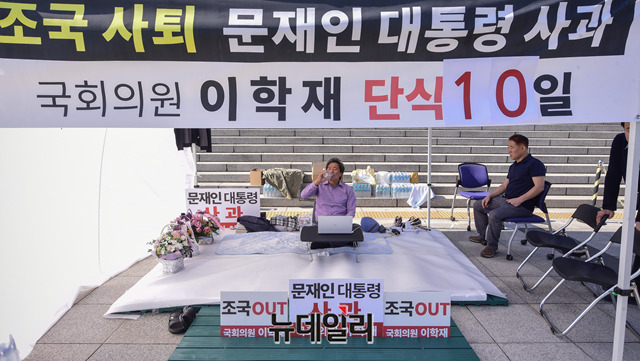 [포토] "조국 사퇴" 촉구… 이학재, 11일째 '단식 투쟁'