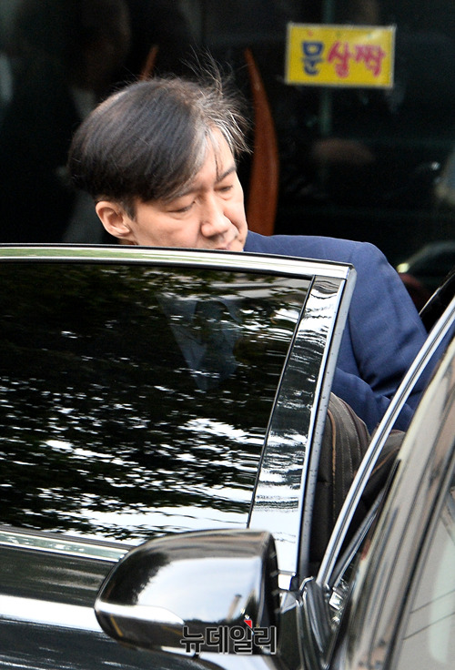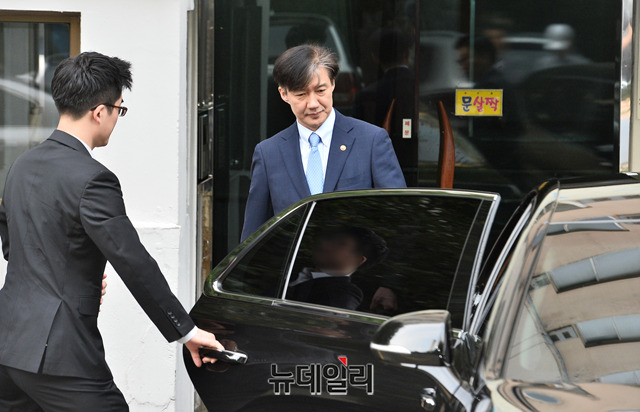 조국 법무부 장관 부인 정경심 교수의 검찰 소환이 임박한 가운데 조 장관이 26일 오전 서울 서초구 자택을 나서고 있다.