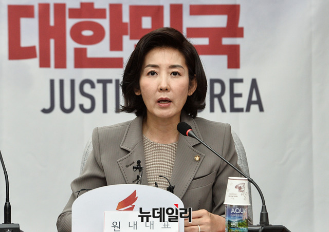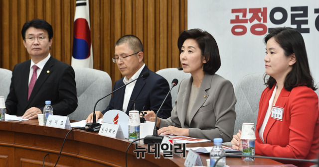 나경원 자유한국당 원내대표가 26일 오전 국회에서 열린 '자유한국당 저스티스리그 출범식 및 1차 회의'에서 발언을 하고 있다. '저스티스리그'는 자유한국당이 공정 사회 구현을 목표로 만든 기구다.