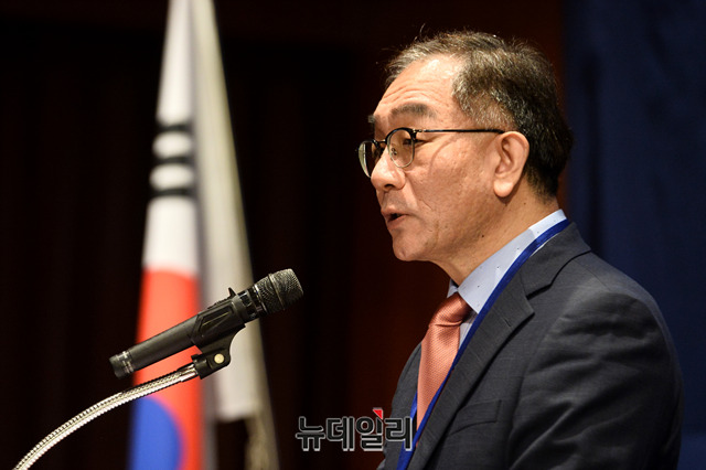 이근 한국국제교류재단(KF) 이사장이 26일 오후 서울 용산구 그랜드 하얏트 서울 호텔에서 열린 '제2차 한-카자흐스탄 비핵화 포럼'에서 개회사를 하고 있다.