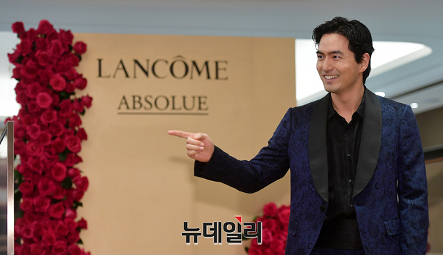 배우 이진욱이 26일 오후 서울 중구 롯데면세점 명동본점 스타라운지에서 열린 랑콤 프리미엄 스킨케어 압솔뤼 컬렉션 행사에서 포토타임을 갖고 있다.