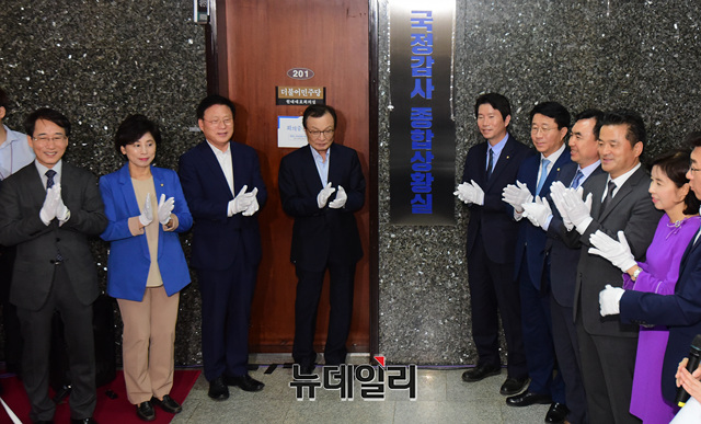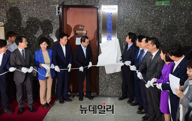 [포토] 국정감사 종합상황실 현판식 갖는 더불어민주당