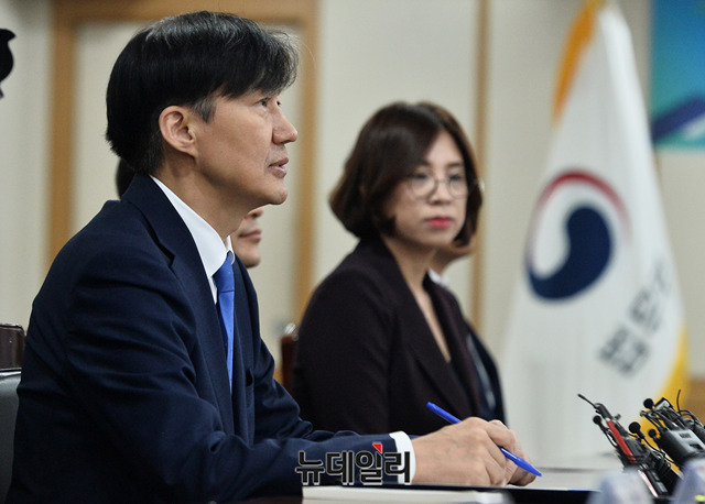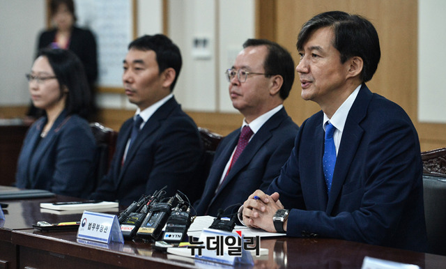 조국 법무부 장관이 30일 오후 경기 과천시 정부과천청사 법무부에서 열린 제2기 법무·검찰 개혁위원회 발족식에서 모두발언을 하고 있다. (경기 과천=박성원 기자)