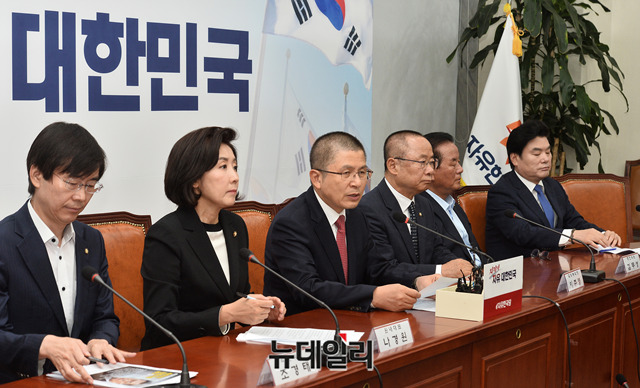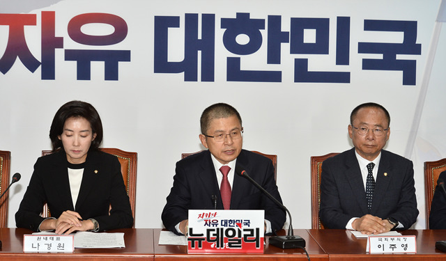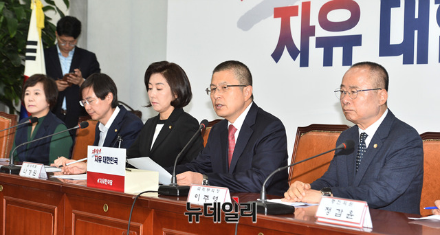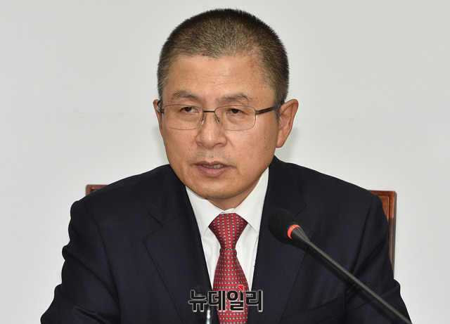 황교안 자유한국당 대표가 2일 오전 국회에서 열린 당대표 및 최고위원·중진의원 연석회의에서 모두발언을 하고 있다.