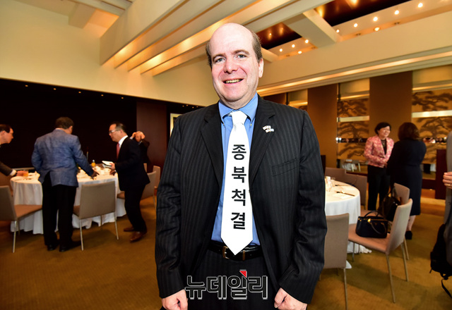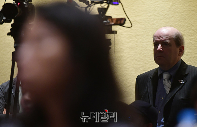 북한인권전문가 '로렌스 펙(Lawrence Peck)'이 2일 오전 서울 용산구 그랜드하얏트 호텔에서 KCPAC2019(한·미보수연합대회) 앞두고 열린 기자회견에 참석해 자리하고 있다.이날 행사에는 '댄 슈나이더' ACU 사무국장, '고든 창' 미국 변호사, 맥 팔랜드 전 백악관 안보담당 부보좌관이 참석했다. 사회는 이동호 한국당 서대문 당협위원장이 맡았다.한·미보수연합대회 3일 오후1시 30분부터 그랜드하얏트 호텔 그랜드 볼룸에서 개최된다.