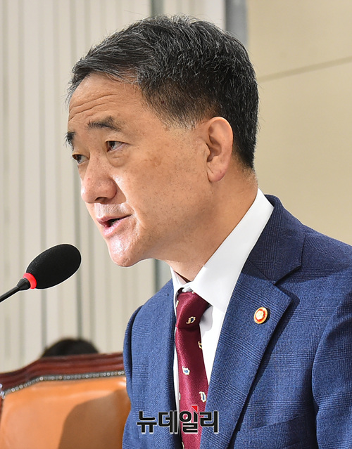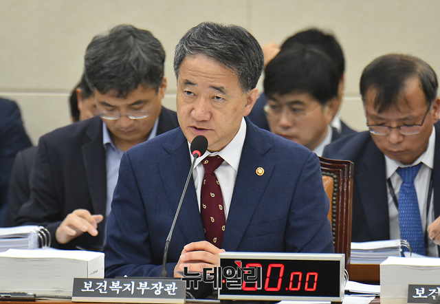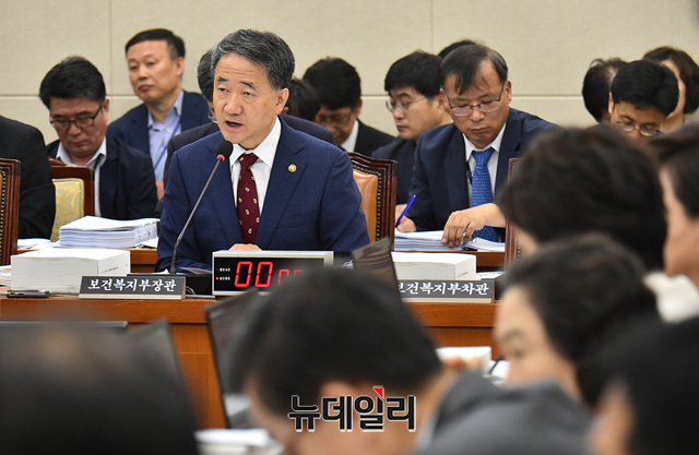 박능후 보건복지부장관이 2일 오전 국회에서 열린 보건복지위원회 국정감사에 출석해 의원들의 질문에 답하고 있다.