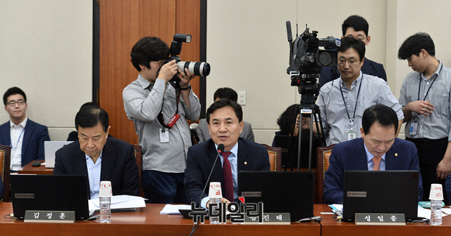 김진태 자유한국당 의원이 2일 오전 국회에서 열린 국회 정무위원회 국정감사에서 질의를 하고 있다.
