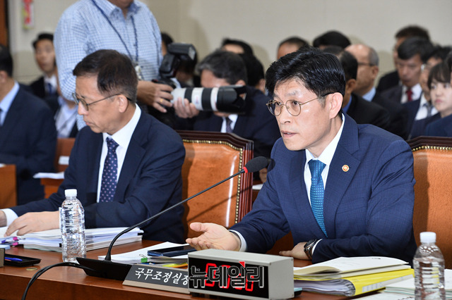 노형욱 국무조정실장이 2일 오전 국회에서 열린 정무위원회 국정감사에 출석해 의원들의 질문에 답하고 있다.