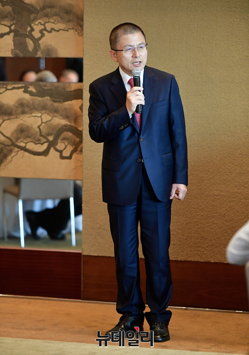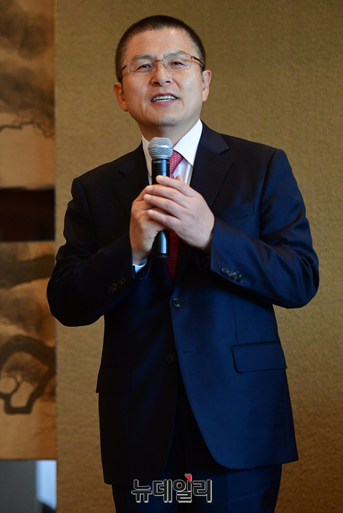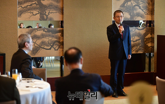 황교안 자유한국당 대표가 2일 오후 서울 용산구 그랜드하얏트 호텔에서 KCPAC2019(한·미보수연합대회) 앞두고 열린 오찬행사에서 인사말을 하고 있다.