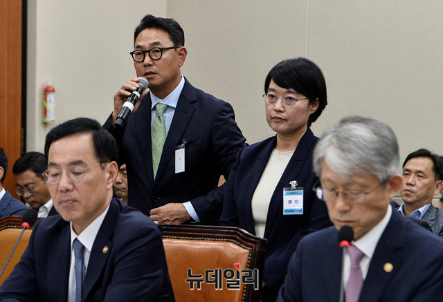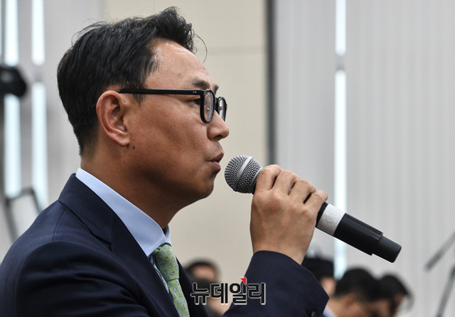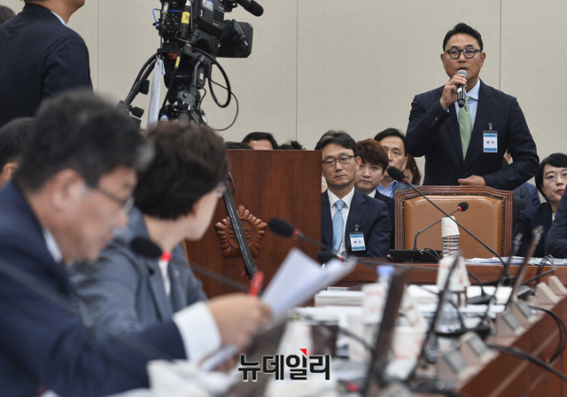 여민수 카카오 공동대표가 2일 오후 국회에서 열린 과학기술정보통신부 국정감사에 증인으로 출석해 의원들 질문에 답하고 있다. 이날 여 대표와 한성숙 네이버 대표는 실검순위조작 논란과 관련해 중앙선관위, 사회적 기구 등과 함께 총선을 앞두고 실검 관련 논의를 하겠다고 말했다.