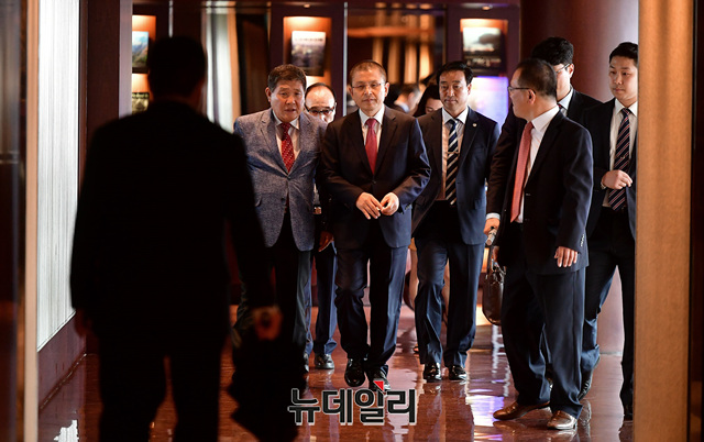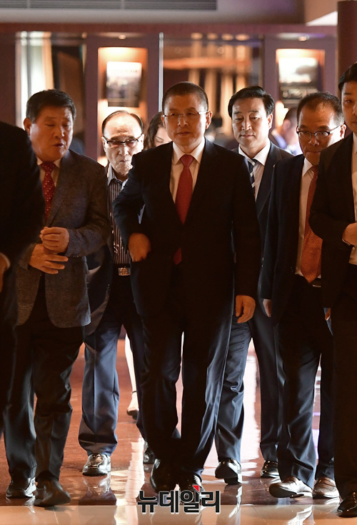 황교안 자유한국당 대표가 2일 오후 서울 용산구 그랜드하얏트 호텔에서 KCPAC2019(한·미보수연합대회) 앞두고 열린 오찬행사에서 입장하고 있다.
