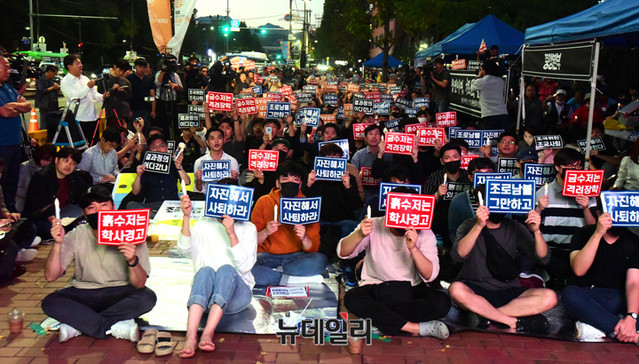 [포토]조국 사퇴촉구 촛불든 대학생들
