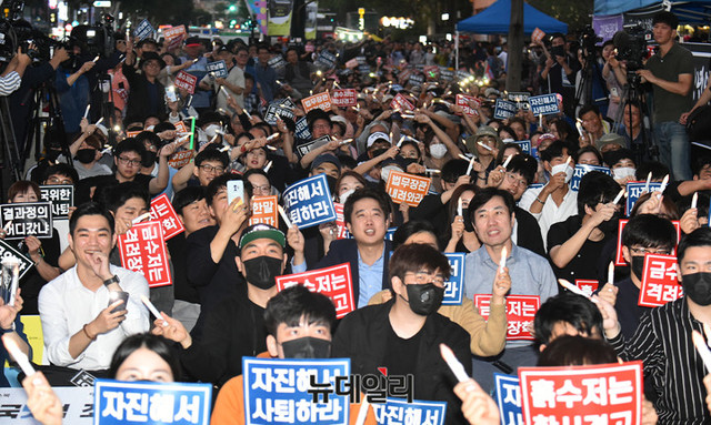 [포토] 촛불든 대학생들 "조국은 내려와라"
