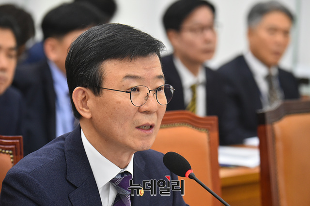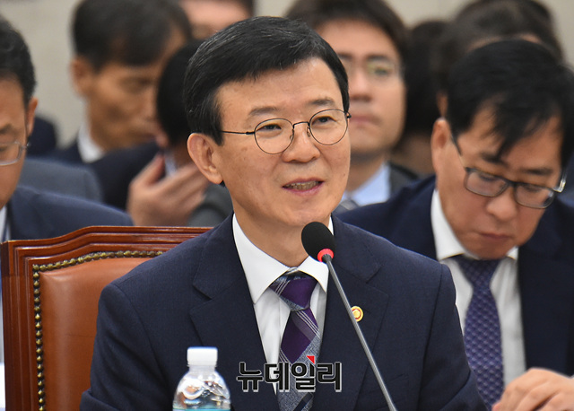 문성혁 해양수산부 장관이 4일 오전 국회에서 열린 농림축산식품해양수산위원회 국정감사에 출석해서 의원들의 질문에 답하고 있다.
