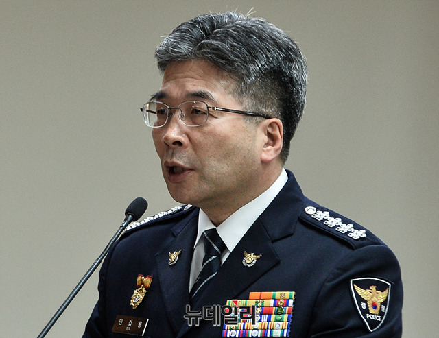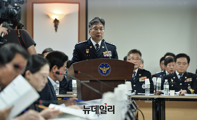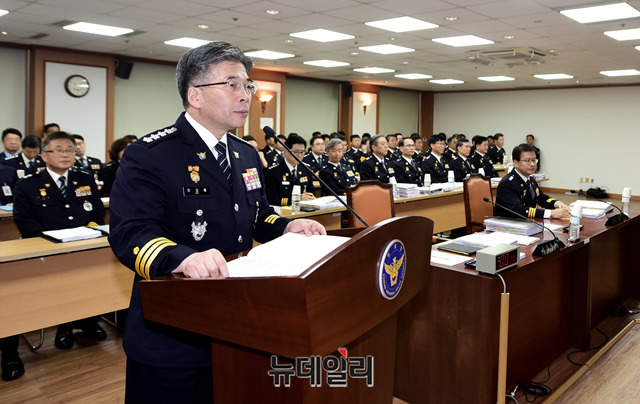 민갑룡 경찰청장이 4일 오전 경찰청에서 열린 국회 행정안전위원회의 경찰청 국정감사에서 인사말을 하고 있다.