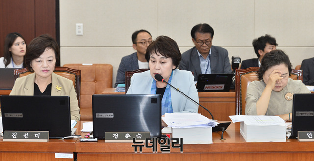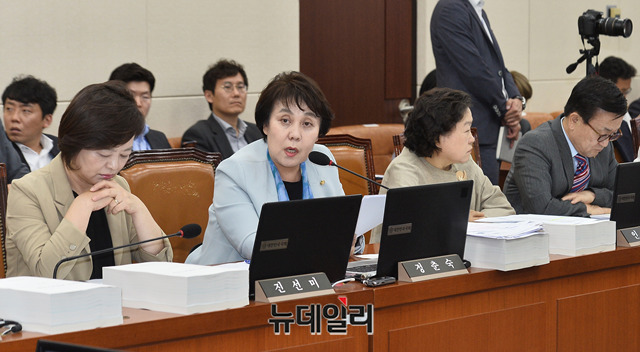 정춘숙 더불어민주당 의원이 4일 오후 국회에서 열린 보건복지위 국정감사에서 질의를 하고 있다.