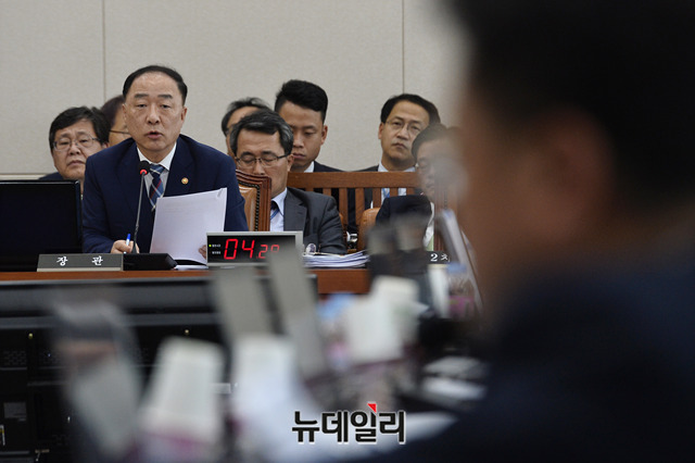 홍남기 경제부총리 겸 기획재정부 장관이 4일 오후 국회에서 열린 기획재정위원회 기획재정부 조세정책 국정감사에 출석해 의원들의 질문에 답하고 있다.