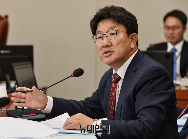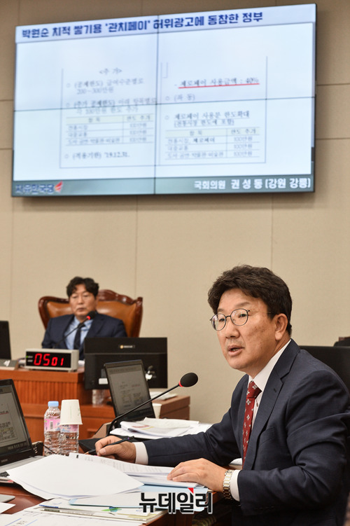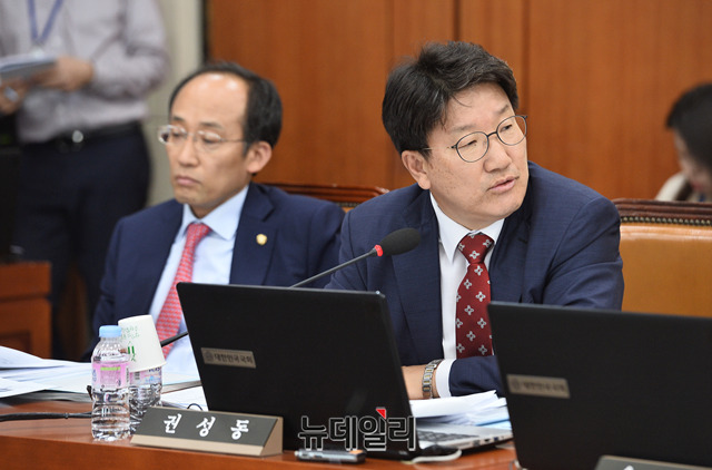 권성동 자유한국당 의원이 4일 오후 국회에서 열린 기획재정위원회 기획재정부 조세정책 국정감사에서 질의를 하고 있다.