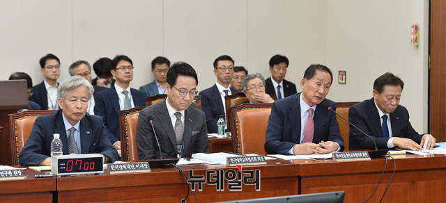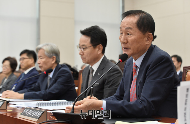 이기우 한국전문대학교 협의회장이 4일 오후 국회에서 열린 교육부 소관 공공기관 및 유관기관 등에 대한 국정감사에 출석해 의원들의 질문에 답하고 있다.