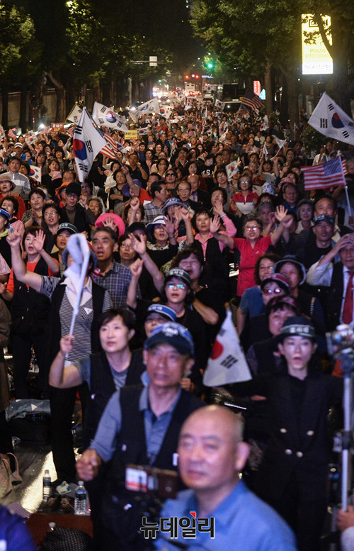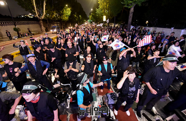 1400여 명, '광화문 집회'후 '밤샘시위'… 하루 만에 3100여 명으로 늘어나