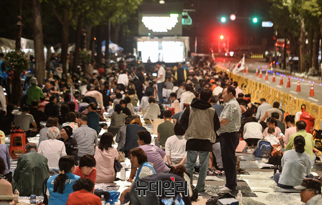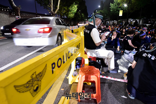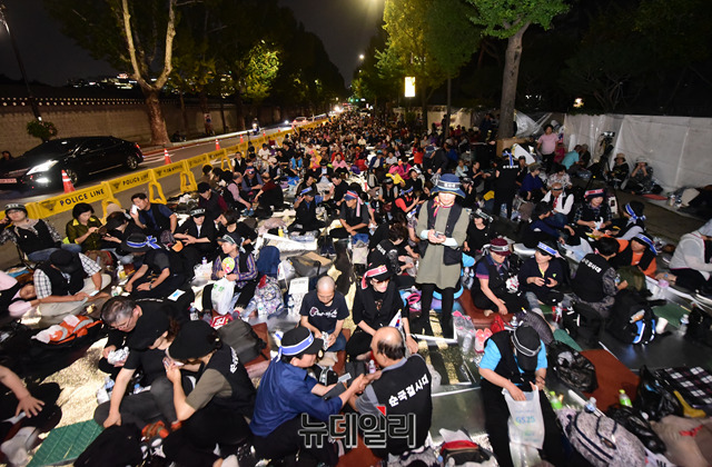 3일 문재인 정권과 조국을 규탄하며 청와대 인근 효자로에서 밤샘농성 집회를 이어가고 있는 우파시민들이 4일 저녁 열릴 '문재인 하야' 촉구 집회를 기다리고 있다. 이들은 문 대통령의 대국민 메시지가 나올 때까지 농성을 이어갈 예정이다. 추최측은 이날 농성에 3,100여 명이 참석했다고 밝혔다.