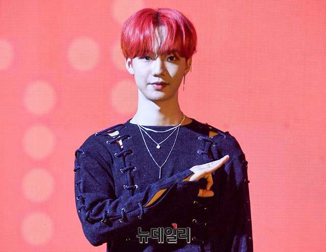 'AB6IX(에이비식스)' 임영민이 7일 오후 서울 동대문구 경희대학교 평화의전당에서 열린 첫 정규 앨범 '6IXENSE(식스센스)' 쇼케이스에서 포토타임을 갖고 있다.