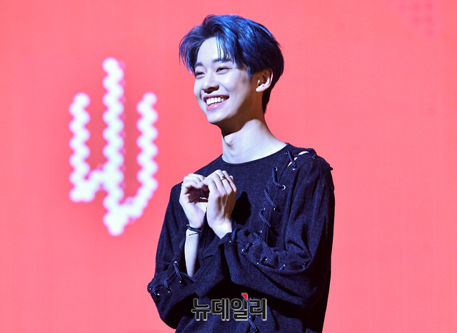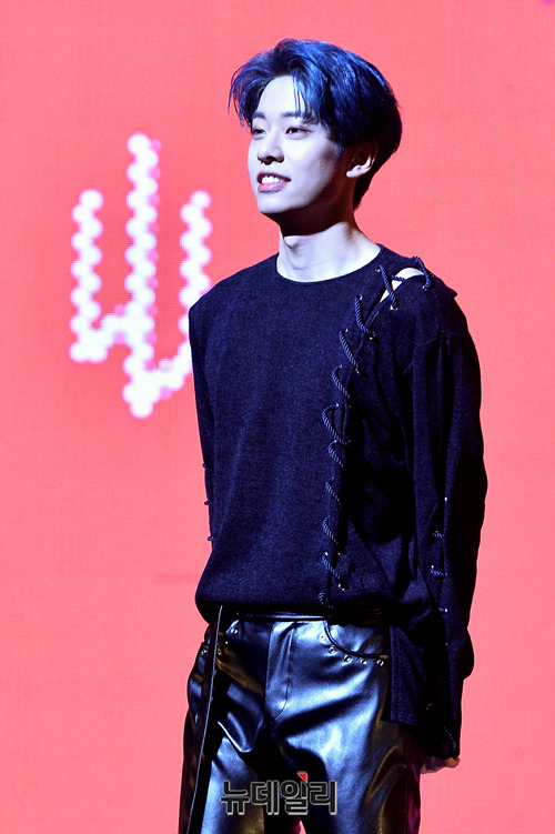 'AB6IX(에이비식스)' 김동현이 7일 오후 서울 동대문구 경희대학교 평화의전당에서 열린 첫 정규 앨범 '6IXENSE(식스센스)' 쇼케이스에서 포토타임을 갖고 있다.