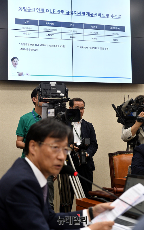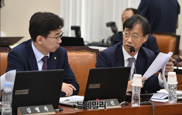 유동수 더불어민주당 의원이 8일 오전 국회에서 열린 국회 정무위원회의 금융감독원 국정감사에서 질의를 하고 있다.