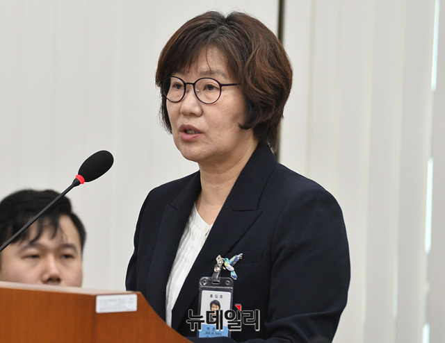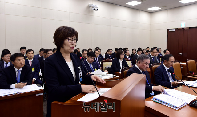 이은숙 국립암센터 원장이 8일 오전 국회에서 열린 국회 보건복지위원회의 국정감사에 출석해 업무보고를 하고 있다.