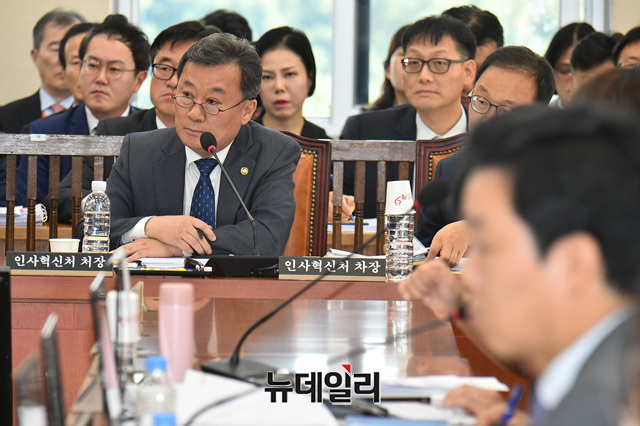 황서종 인사혁신처장이 8일 오전 국회에서 열린 국회 행정안전위원회, 인사혁신처에 대한 국정감사에 출석해 의원들의 질문에 답하고 있다.