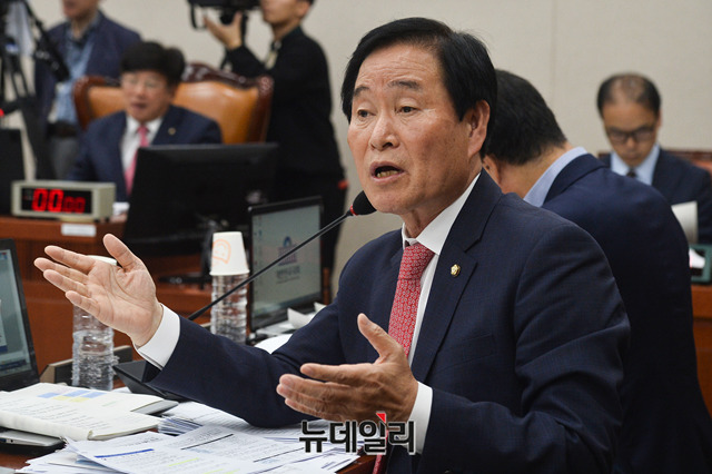 곽대훈 자유한국당 의원이 8일 오후 국회에서 열린 국회 산업통상자원중소벤처기업위원회의, 중소벤처기업부에 대한 국정감사에서 질의를 하고 있다.