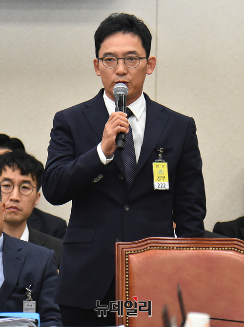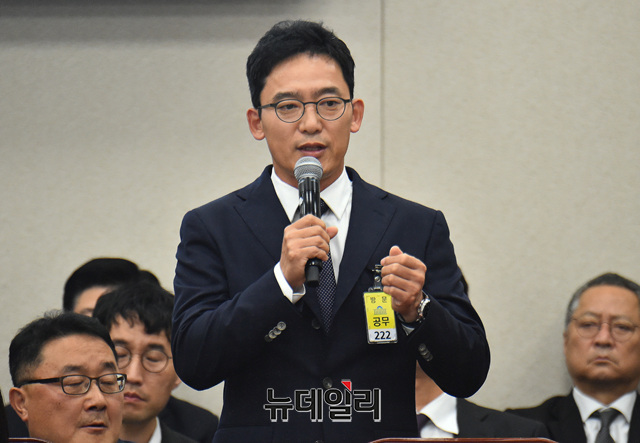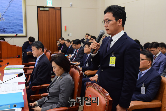 정영훈 K2코리아 대표이사가 8일 오후 국회에서 열린 국회 산업통상자원중소벤처기업위원회, 중소벤처기업부의 국정감사에서 증인으로 출석해 의원들의 질문에 답하고 있다.