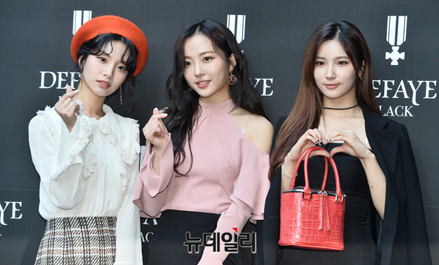 걸그룹 엘리스 소희(왼쪽부터), 벨라, 혜성이 8일 오후 서울 강남구 드페이블랙 플래그십스토어에서 열린 'COME BACK TO DEFAYE BLACK(컴 백 투 드페이 블랙)' 재론칭 행사에서 포토타임을 갖고 있다.