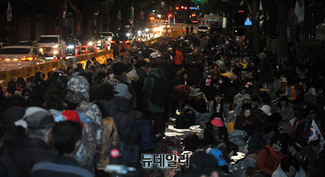 [포토] 6일째 밤 맞은 '문재인 하야-조국 사퇴' 철야농성장