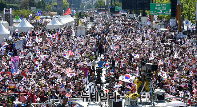 [포토] '문재인-조국' 퇴진, 광화문에 모인 자유시민들