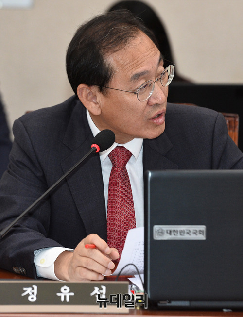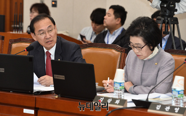 정유섭 자유한국당 의원이 10일 오전 국회에서 열린 국회 산업통상자원중소벤처기업 위원회 국정감사에서 질의를 하고 있다.