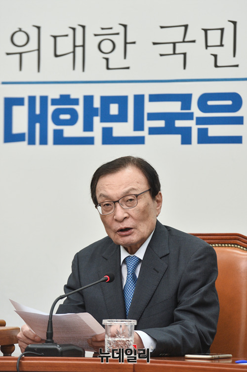 이해찬 더불어민주당 대표가 11일 오전 국회에서 열린 최고위원회의에서 모두발언을 하고 있다.