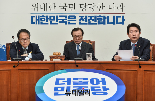 이인영 더불어민주당 원내대표가 11일 오전 국회에서 열린 최고위원회의에서 모두발언을 하고 있다.