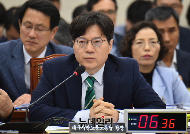 장근섭 대구지방고용노동청 청장이 11일 오전 국회에서 열린 국회 환경노동위원회 서울지방고용노동청, 중부지방고용노동청, 부산지방고용노동청, 대구지방고용노동청, 광주지방고용노동청, 대전지방고용노동청에 대한 국정감사에 의원들의 질문에 답하고 있다.