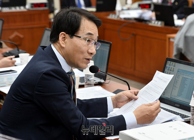 이원욱 더불어민주당 의원이 11일 오전 국회에서 열린 과학기술정보방송통신위원회 국정감사에서 질의를 하고 있다.