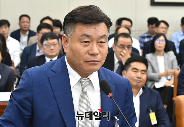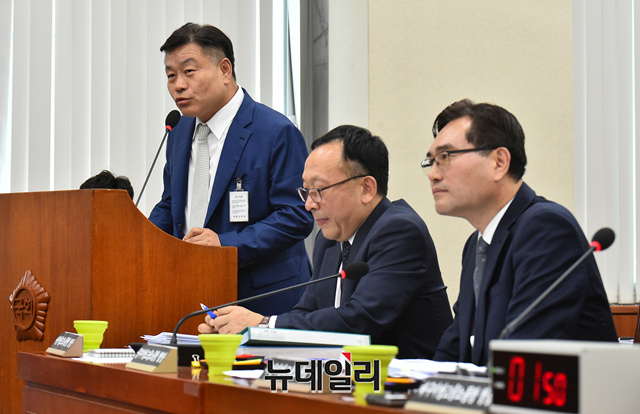 박양춘 티센크루프엘리베이터 대표가 11일 오후 국회에서 열린 국회 환경노동위원회의 서울지방고용노동청 등 국정감사에 증인으로 출석해 의원들의 질문에 답하고 있다.