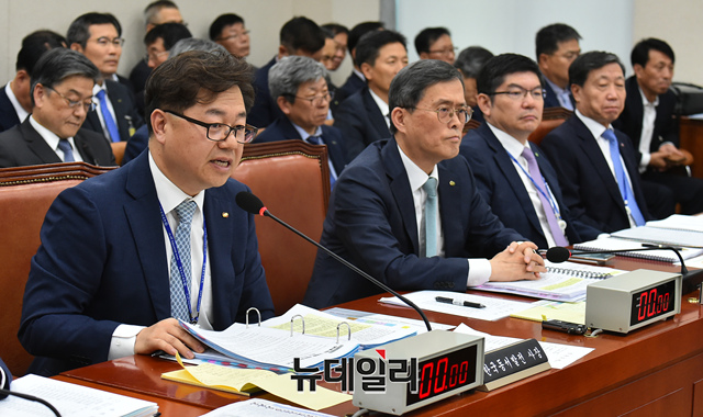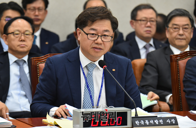 박일준 한국동서발전 사장이 14일 오전 국회에서 열린 산업통상자원중소벤처기업위원회 국정감사에 출석해 의원들의 질문에 답하고 있다.