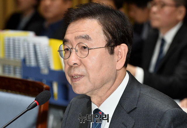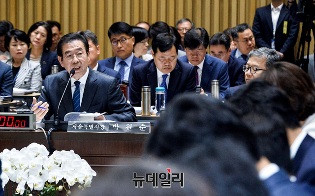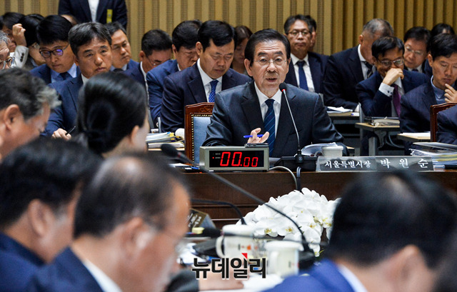 박원순 서울시장이 14일 오전 서울 중구 서울시청 대회의실에서 열린 국회 행정안전위원회 서울시청 국정감사에서 의원들의 질문에 답하고 있다.