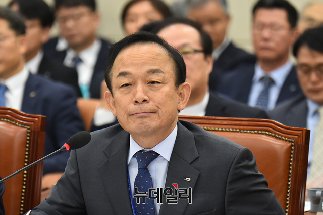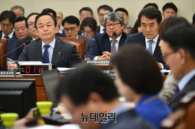 이학수 한국수자원공사 사장이 14일 오전 국회에서 열린 환경노동위원회의 한국수자원공사, 국립공원공단, 국립생태원 등에 대한 국정감사에 출석해 의원들의 질문에 답하고 있다.